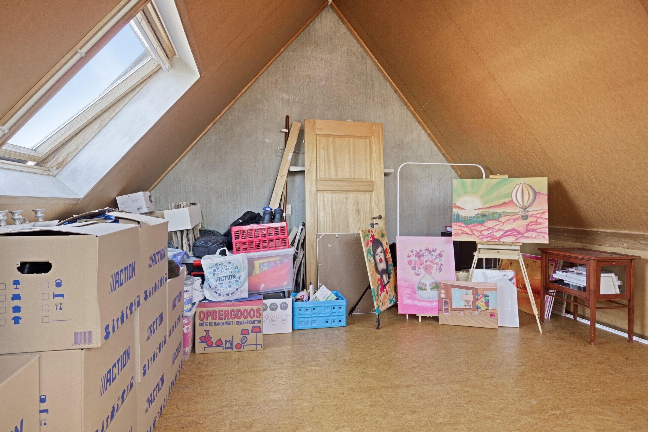 Via een vaste trap bereikt u de zolderverdieping. Hier bevinden zich de aansluitingen voor de wasmachine, CV ketel en er is voldoende bergruimte. Met een kleine aanpassing kan deze verdieping ook worden ingericht als extra slaapkamer, werkruimte of hobbykamer.